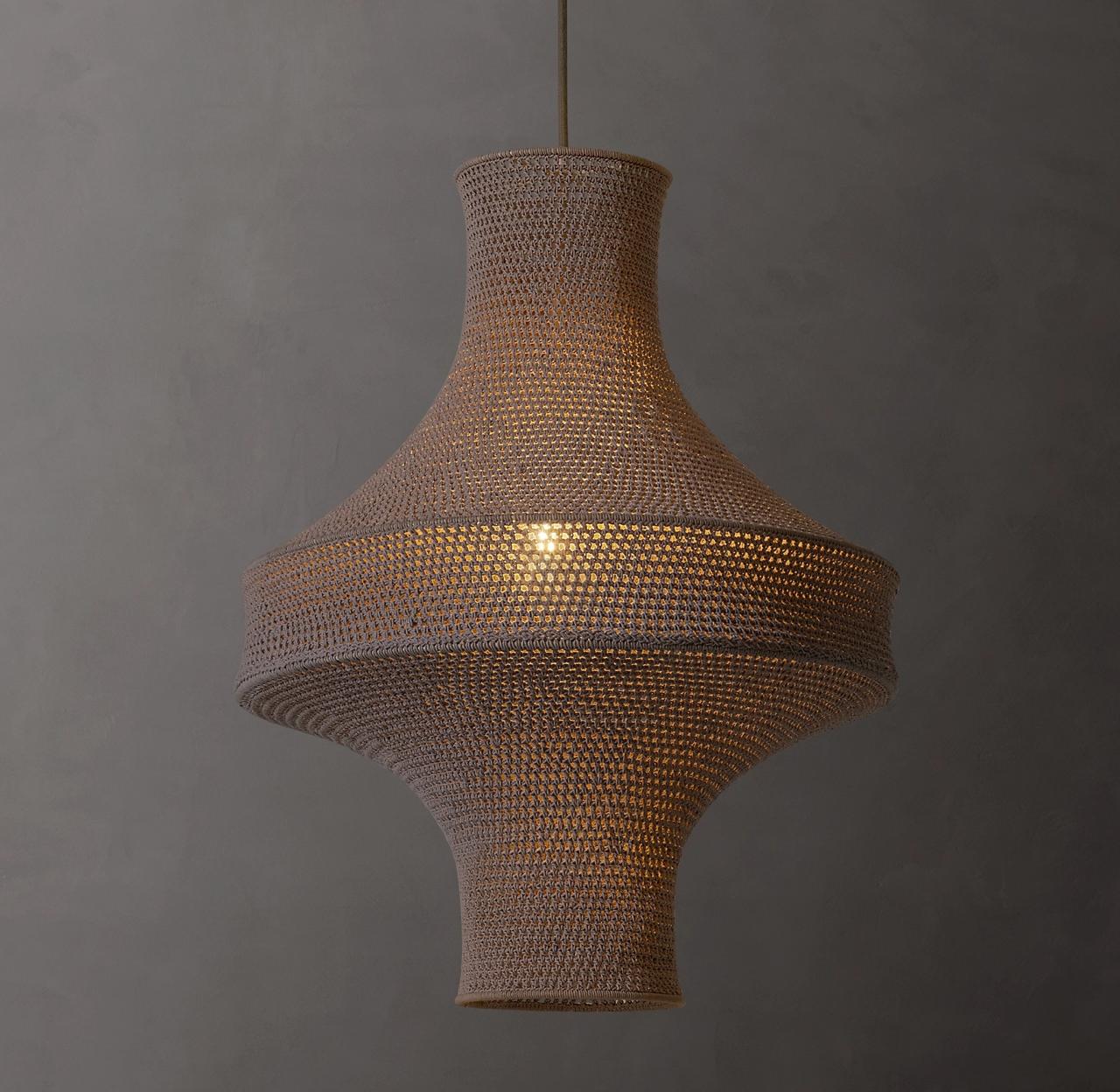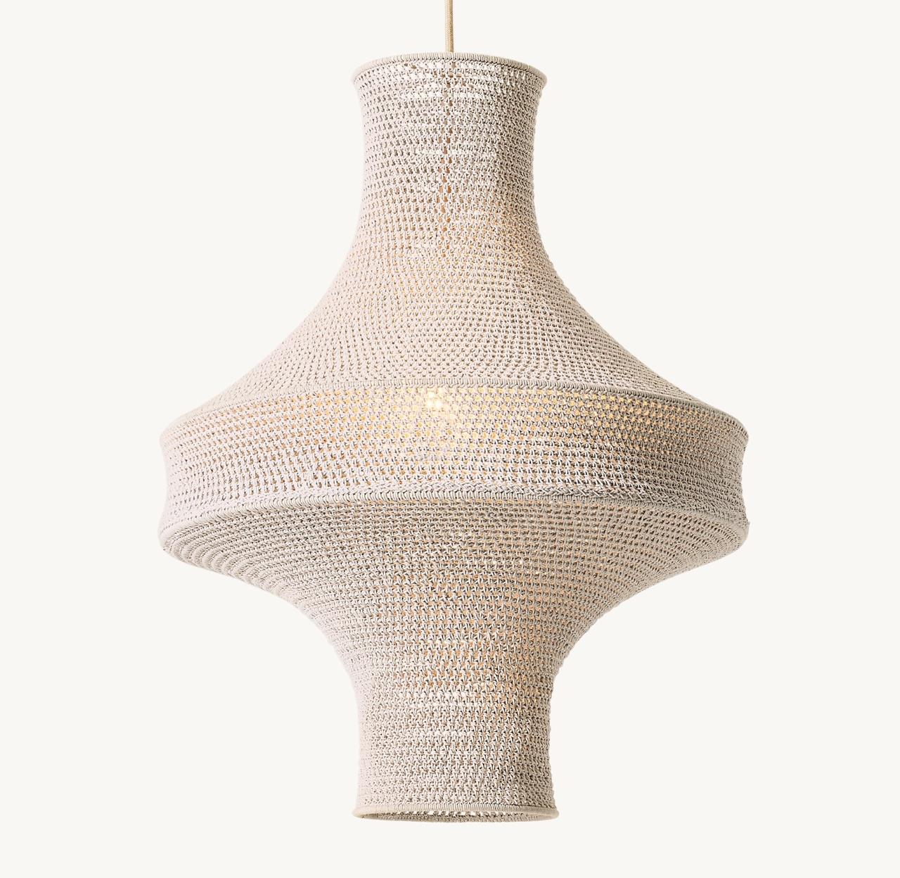 Esta lámpara colgante artesanal está hecha en tejido de cordón con una forma elegante y curvada que añade textura y calidez a cualquier espacio. El tono natural permite que la luz se filtre suavemente, creando un efecto de iluminación cálido y acogedor.