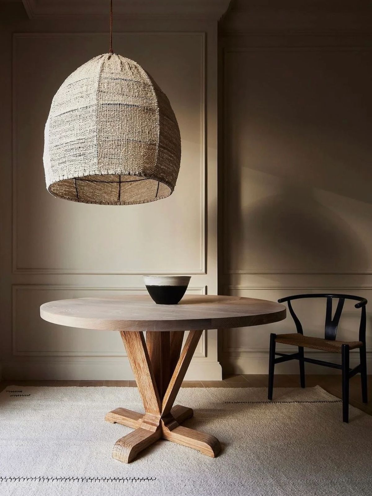 Perfecta para espacios como salas de estar o comedores, esta lámpara aporta una sensación de calidez y armonía, complementando decoraciones de estilo natural o minimalista con un toque de elegancia orgánica.
