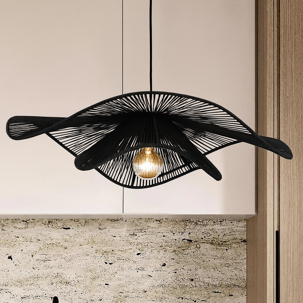 Perfecta para salas de estar, comedores o espacios de lectura, esta lámpara aporta calidez y un toque orgánico al ambiente, evocando un estilo bohemio y acogedor.