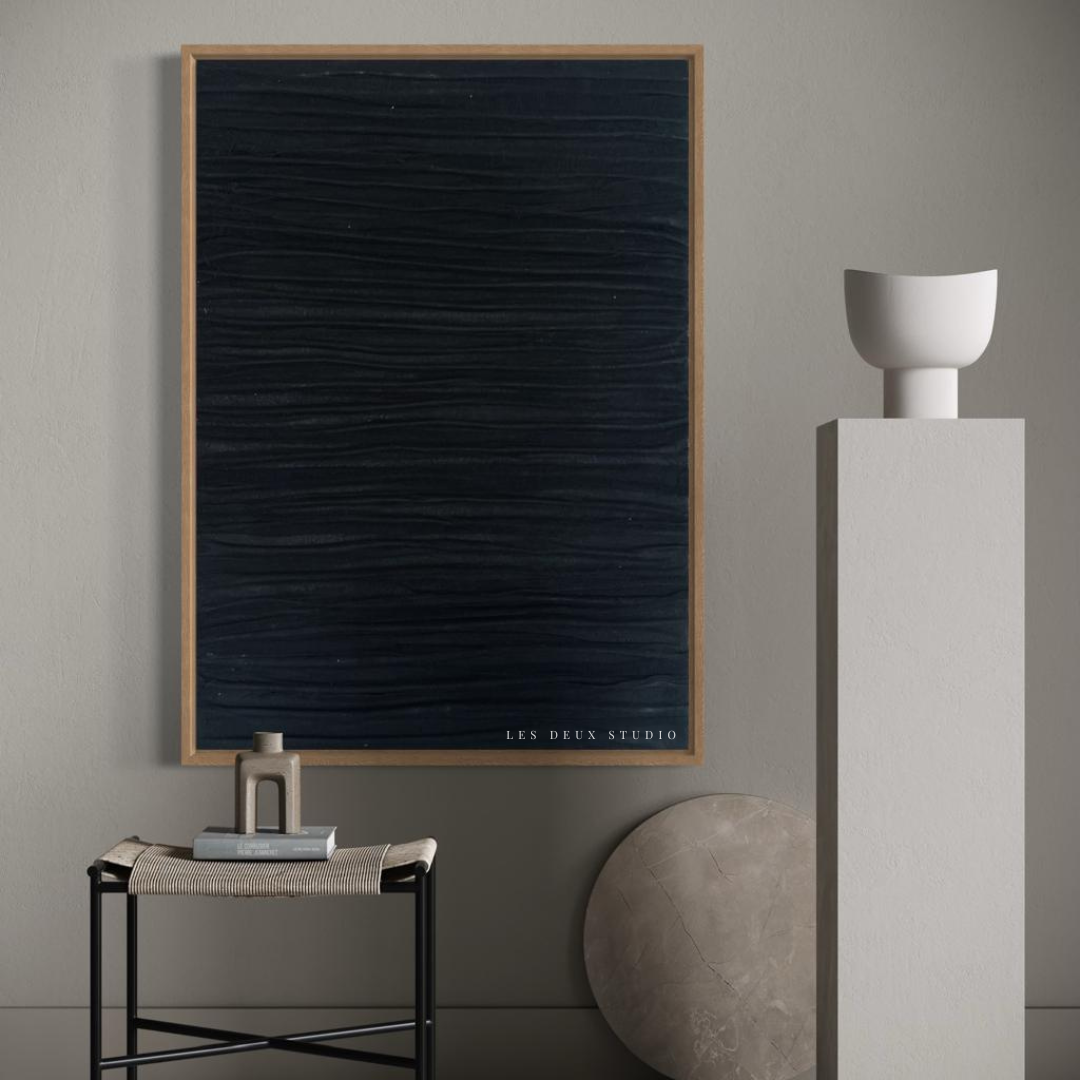 Perfecto para espacios como oficinas, livings u hoteles boutique, este cuadro transmite elegancia, introspección y equilibrio. Su estética monocromática lo hace ideal para interiores modernos, minimalistas o de estilo contemporáneo.
